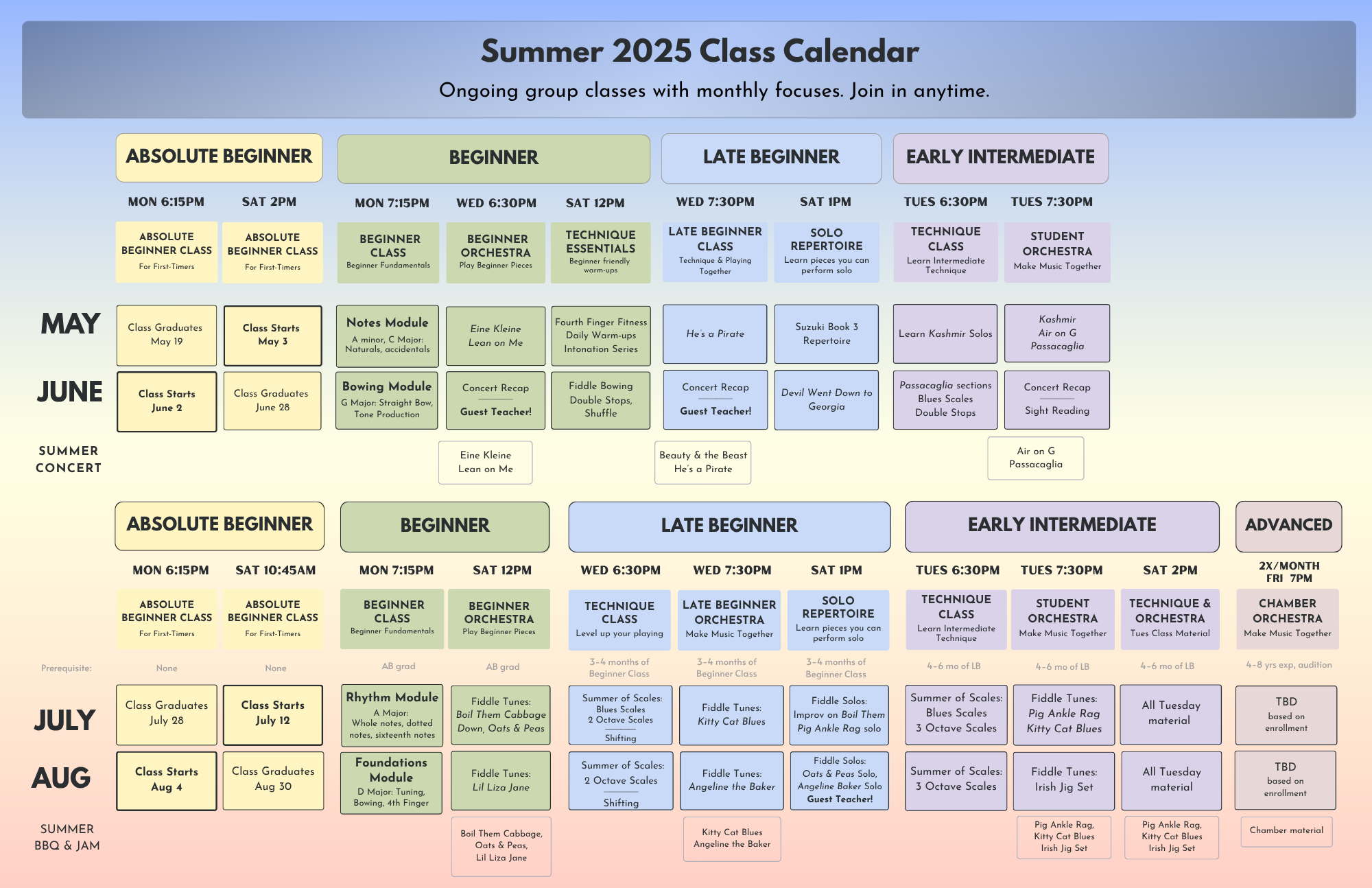 My classes will help you improve on violin so that you can achieve your goals in playing anything you like.